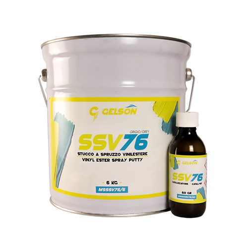 Two-component spray putty based on vinyl ester resin. Spread in several hands, allows to obtain high thicknesses.